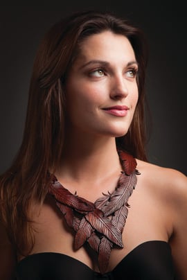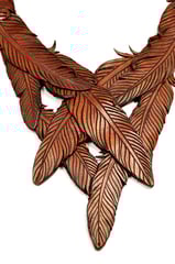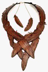This neckpiece is one of a kind. A true statement when worn. Each feather is individually hand carved out of vegetable-tanned natural russet leather then hand dyed and sealed.